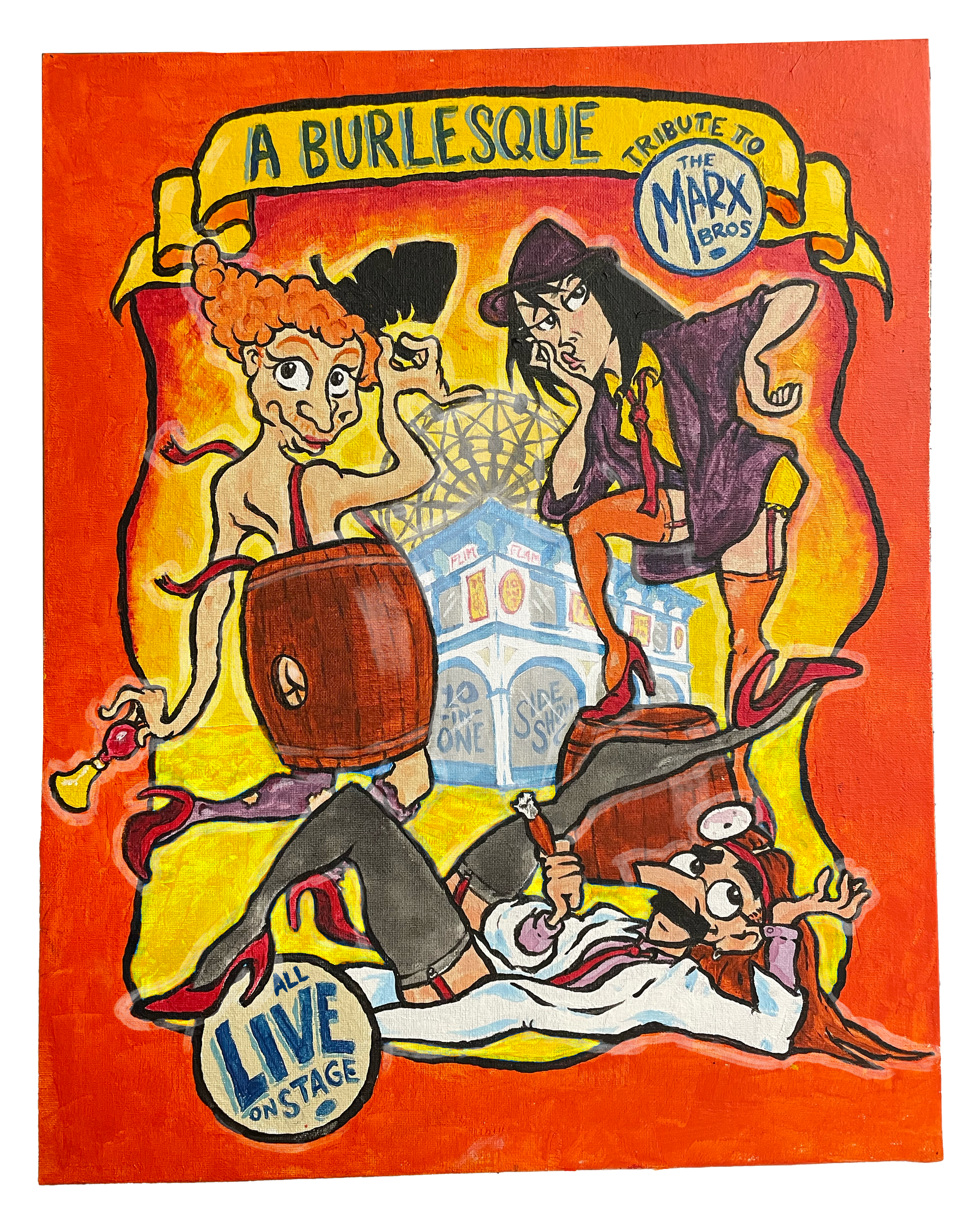 Dateline: 1938! After shutting down NY’s striptease shows, an ambitious city official turns his prudish attentions to Coney Island, scheming to terminate the 10-in-1, the thrill rides, the midway games, and everything else the People’s Playground is famous for! It’s up to the Flim Flam Sideshow's house doctor, a boardwalk grifter, and a suspiciously silent merchant of wieners to thwart the pernicious politico … with burlesque! Classic comedy meets carny meets the ol' bump-n-grind in this burlesque tribute to the Marx Brothers starring Jonny Porkpie as the Groucho, Lady Scoutington as the Chico, Tigger! as the Harpo, and Audrey Love (5/24), Dutch Baby, Jo Weldon, Mat Fraser, Peekaboo Pointe (5/25 & 5/26), Susie Dahl, Miss Coney Islands Gigi Bonbon and Miss Frankie Eleanor, and more! A new madcap frolic in the Marxian vein, live on stage at the Coney Island Sideshow!